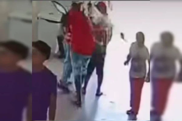 Momento da agressão dentro de um restaurante comunitário
