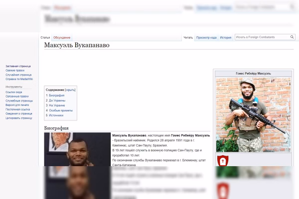 O ex-policial militar Maxuel Vukapanavo morreu, na Ucrânia, em fevereiro de 2024. Ele é um dos nomes presentes na “Wikipedia” russa de mercenários