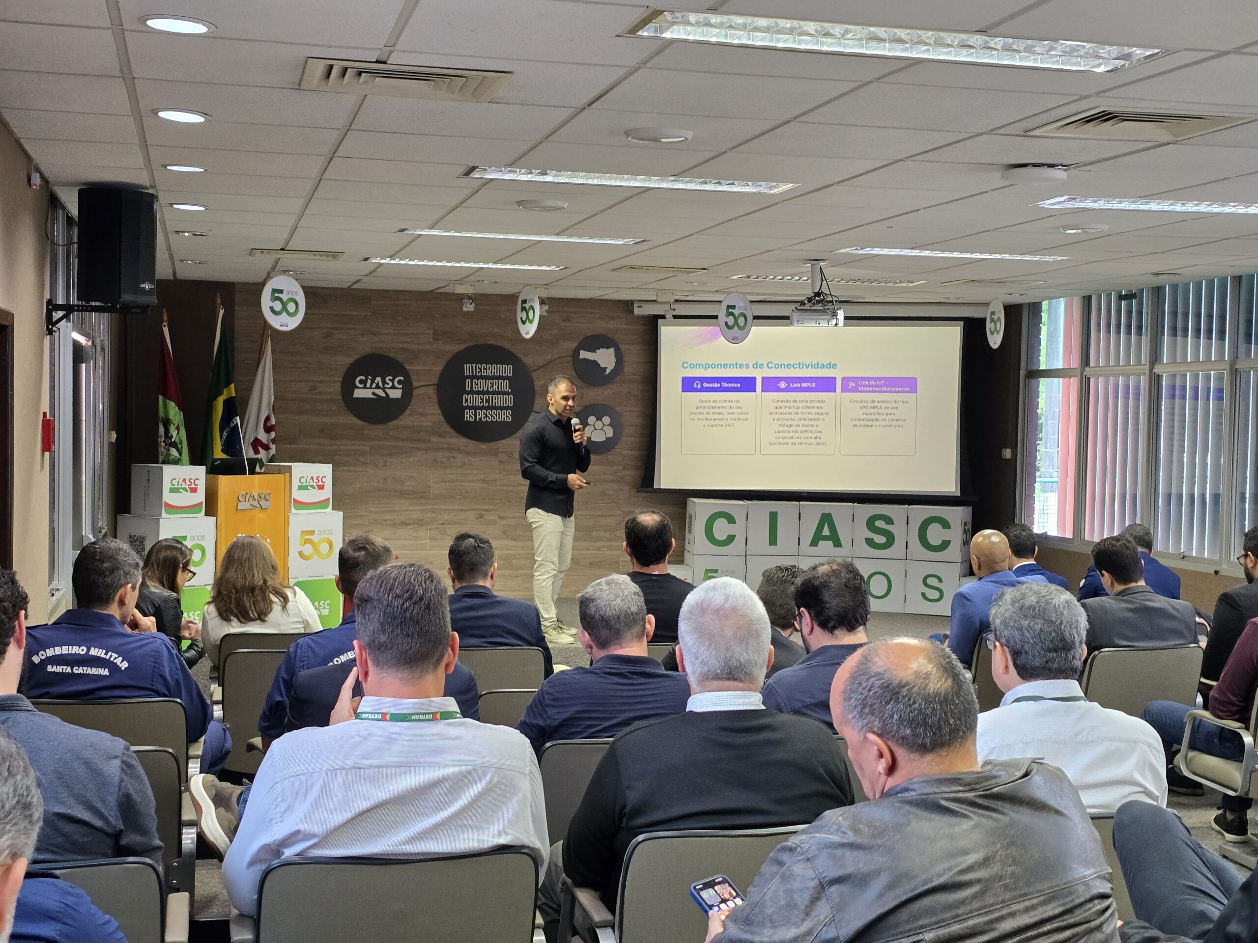 Para o gerente de Redes e Data Center do Ciasc, Brunno Nascimento Lopes, o diferencial está na capacidade da empresa em compreender as particularidades do setor público e propor soluções sob medida. “Atualmente o Ciasc possui mais de 2 mil quilômetros de fibra óptica própria, com rede presente em 42 cidades e atendimento 100% voltado ao governo, estadual e municipal. São 65 Gbps de trânsito de internet e mais de 3.400 circuitos ativos. Toda a nossa atuação é direcionada à administração pública, e queremos entregar soluções com a performance que o governo precisa”, destacou.
