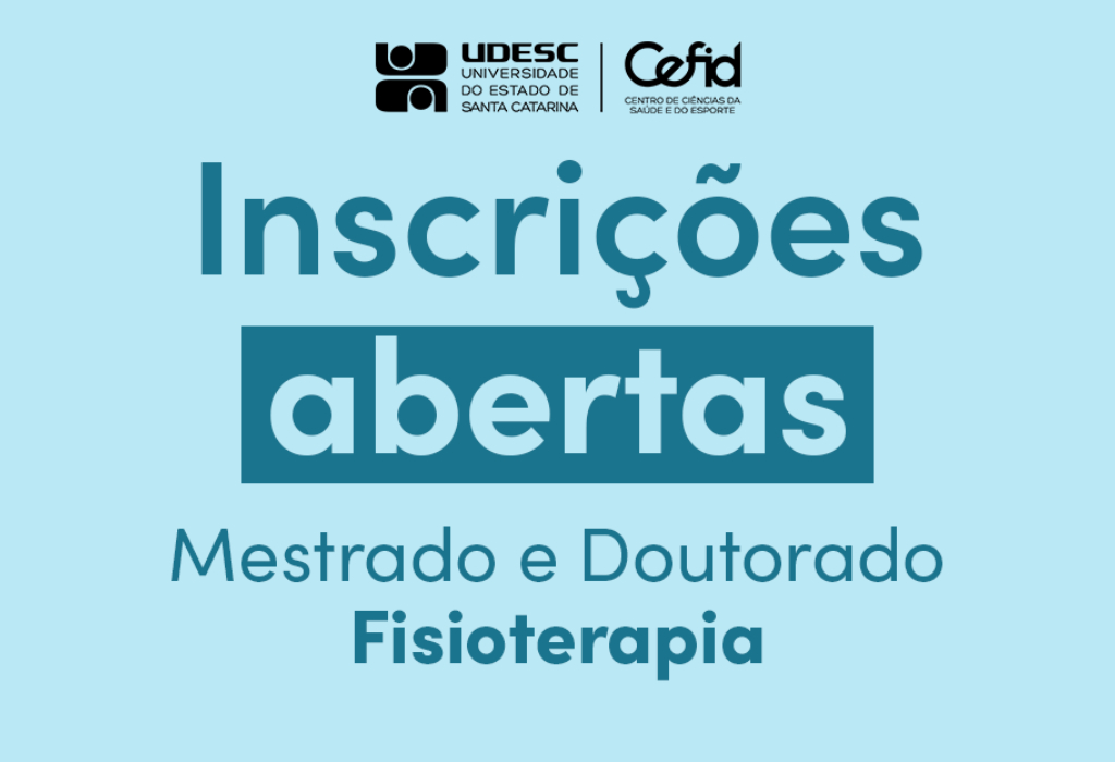 O Centro de Ciências da Saúde e do Esporte (Cefid), da Universidade do Estado de Santa Catarina (Udesc), abriu inscrições do Programa de Pós-Graduação em Fisioterapia (PPGFT) nesta terça-feira, 21, para até seis vagas remanescentes no mestrado e até 14 vagas no doutorado, com ingresso no primeiro semestre de 2026 para aulas no Bairro Coqueiros, em Florianópolis. Confira o edital e os anexos na página do programa.