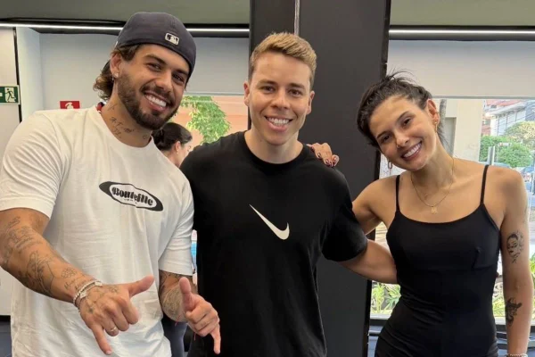 Em uma primeira foto, a dupla aparece na academia ao lado do personal da cantora. E os internautas logo perceberam um anel novo no dedo anelar na mão esquerda do filho de Leonardo.